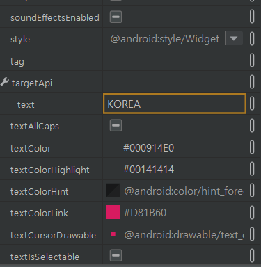 프로젝트의 XML 부분에는 디자인과 텍스트 영역이 따로 되어있는데
