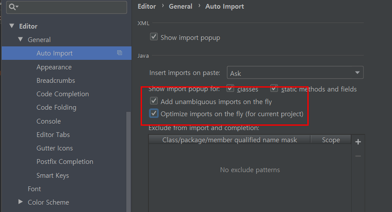 Editor - General - Auto Import에서 위의 체크한 부분을 모두 체크하면 된다.