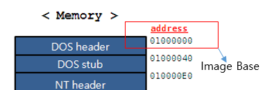 0부터 시작안하고 010000000 로시작하는데 이때 01000000이 ImageBase 이다.